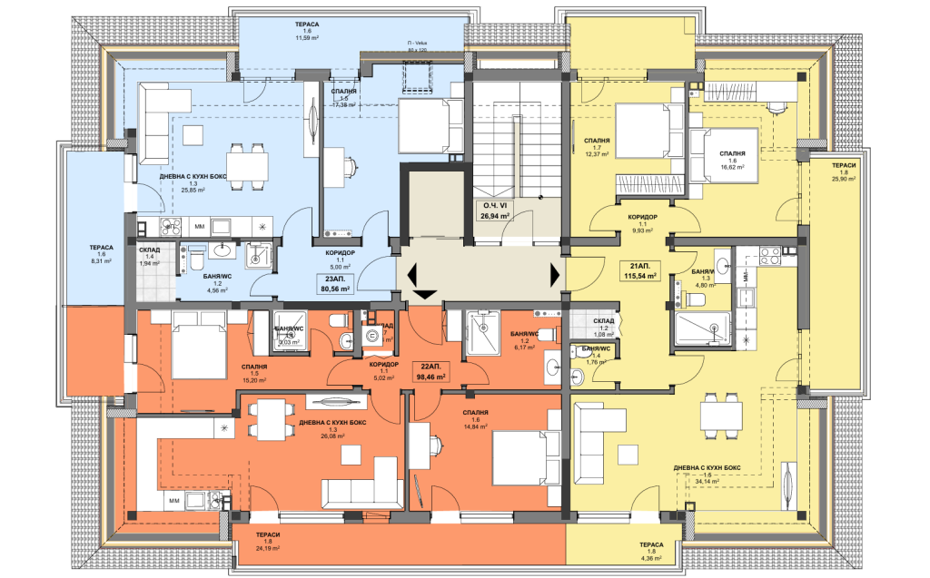 Две предстоящи жилищни сгради в квартал Запад на град Асеновград. Сградите ще разполага с практични едностайни и комфортни двустайни жилища, както и просторни многостайни апартаменти и впечатляващи пентхауси с панорамни тераси.